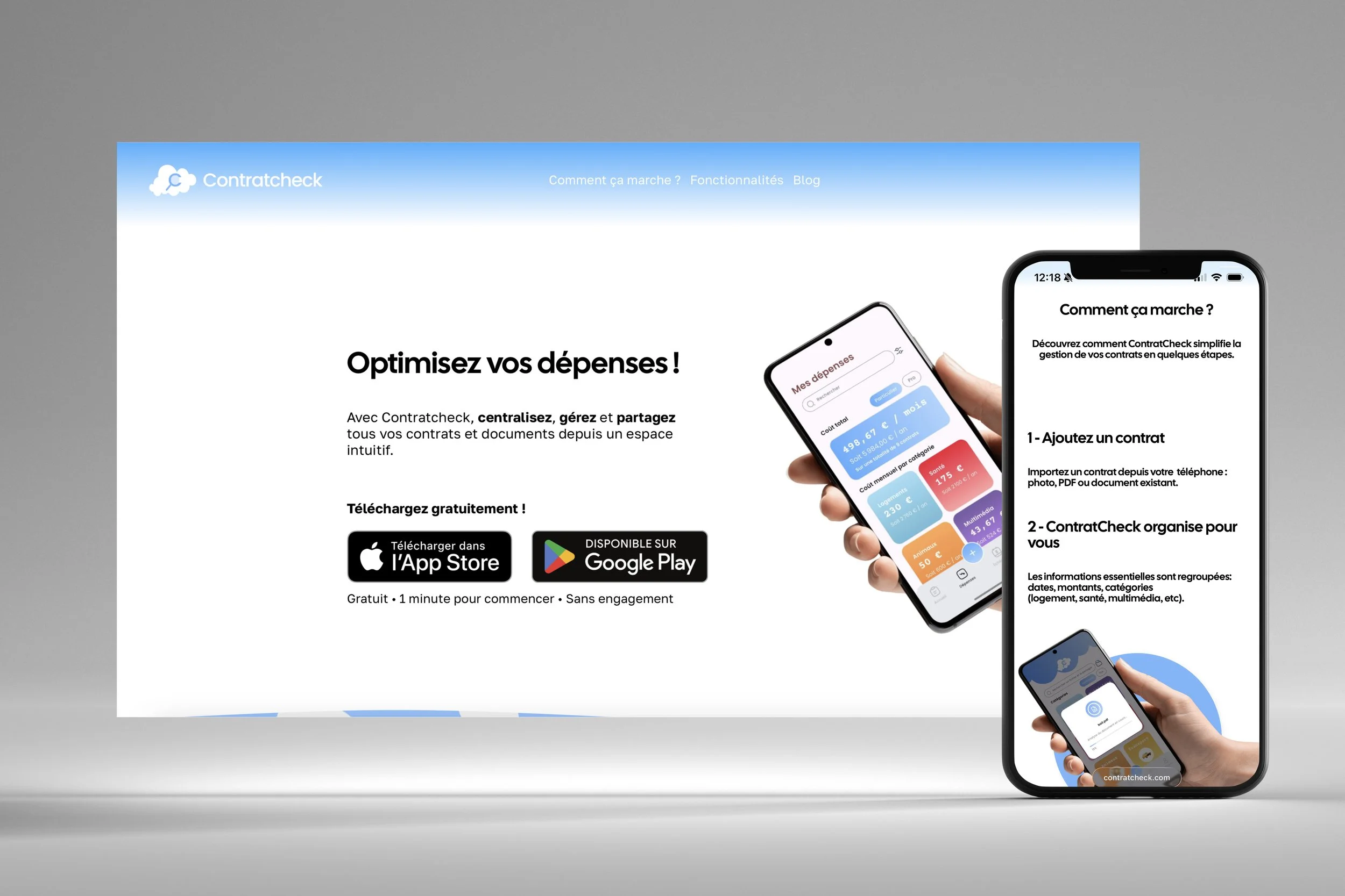 ContratCheck est une application qui permet de centraliser tous ses contrats et dépenses au même endroit. Elle aide l’utilisateur à mieux comprendre ce qu’il paie chaque mois et à identifier facilement les coûts inutiles ou trop élevés. L’objectif est de reprendre le contrôle sur ses abonnements et de pouvoir agir (résilier, renégocier, comparer).